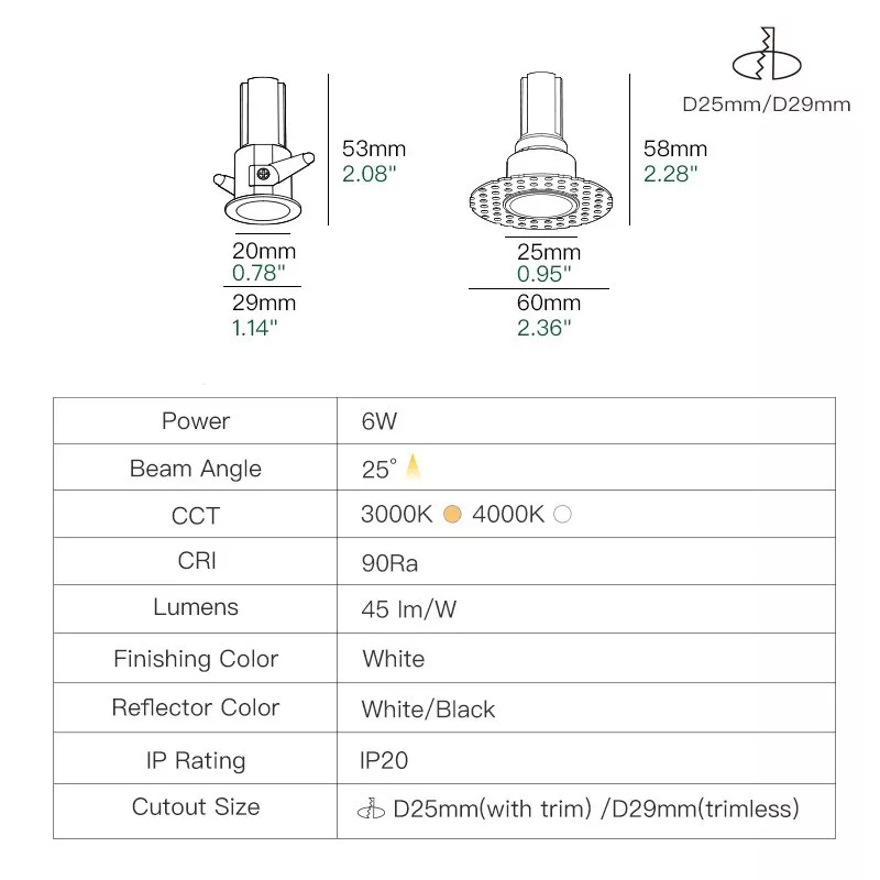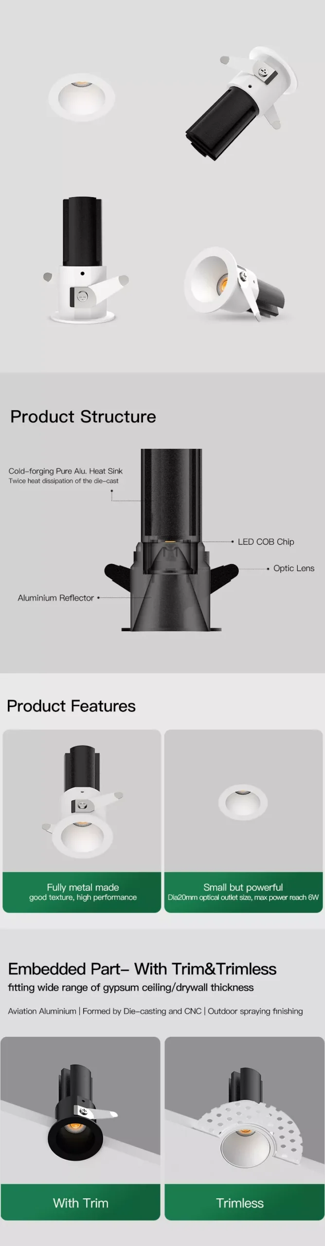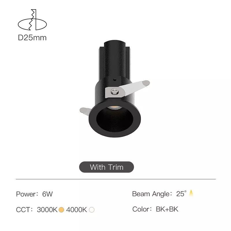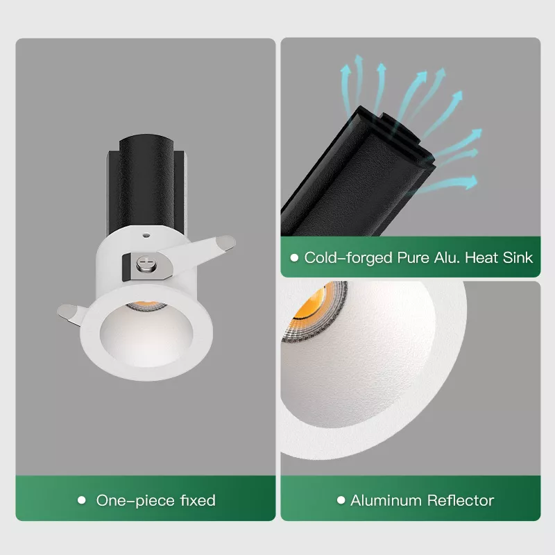A true 0.5 inch recessed round fixed downlight made for the most minimal ceilings and tightest architectural details. Available in both micro flange and trimless versions, it gives you either a subtle finished edge or a fully seamless plaster-in look with the same internal performance. The ultra-small aperture keeps the ceiling almost invisible, while the fixed beam delivers smooth, predictable light for consistent layouts. Built with a high-CRI LED engine, precision optics for clean cut-off, and a solid aluminum thermal body that keeps output stable over time, it’s ideal for luxury residential corridors, millwork features, boutique retail, galleries, and any interior that needs refined micro-scale lighting.