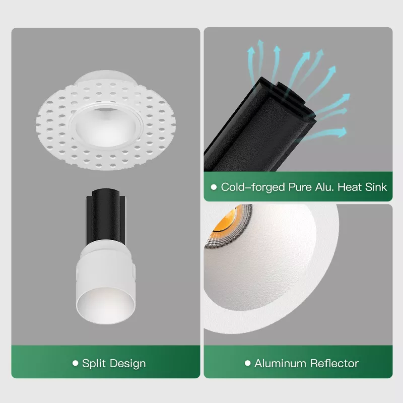 This downlight is intended for dry interior applications. Use it in luxury homes, boutique retail, galleries, hotels, or any space where the architectural intent is minimalism and the ceiling detail needs to stay clean.