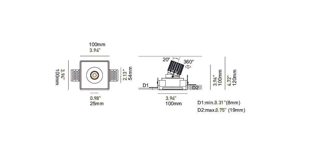 This model features an adjustable light module, allowing up to 20 degrees of tilt and full 360-degree rotation. This flexibility makes it suitable for accent lighting, artwork illumination, and directional applications where precise aiming is required. Despite its compact size, the downlight delivers strong performance through a high-quality COB LED paired with an optimized optic for clean beam definition and consistent output.