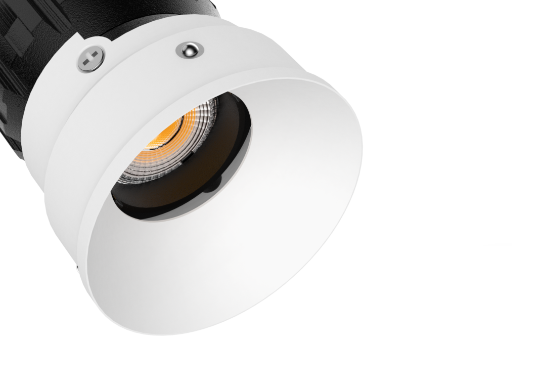 The concave geometry plays a key role in visual comfort. By recessing the light source deeper into the ceiling plane, glare is significantly reduced while maintaining focused, usable illumination. The result is a soft, controlled beam that highlights surfaces and objects without harsh cut-off or visual noise, making it ideal for living spaces, corridors, galleries, and hospitality interiors.