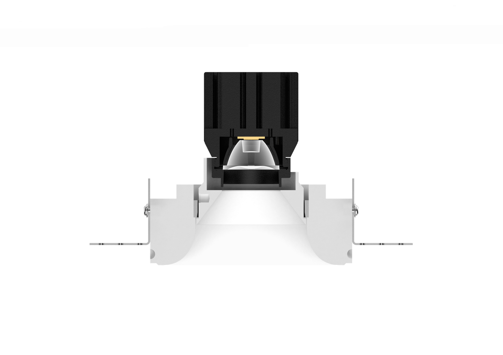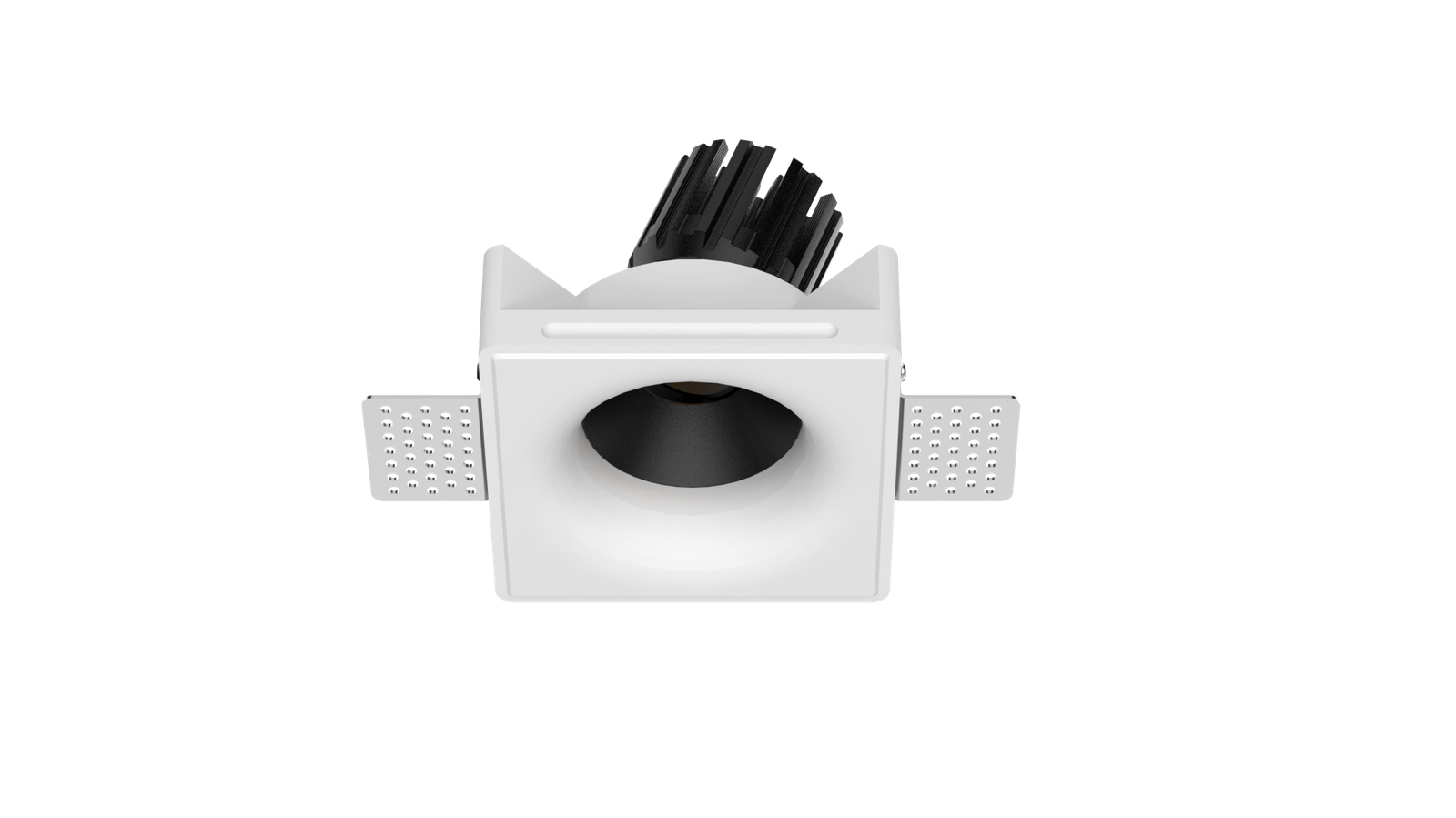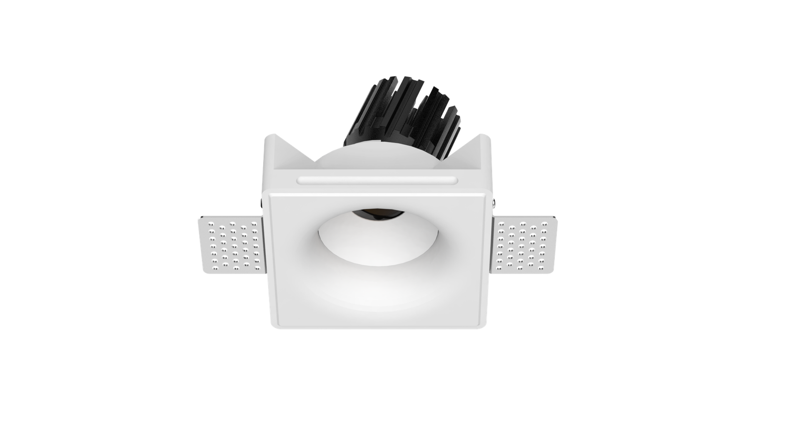 Thermal performance is handled by a cold-forged aluminum heat sink integrated into the lamp body, ensuring stable operation and long-term reliability. The split design allows for easier installation and future maintenance, even after the gypsum housing has been plastered and painted in place.