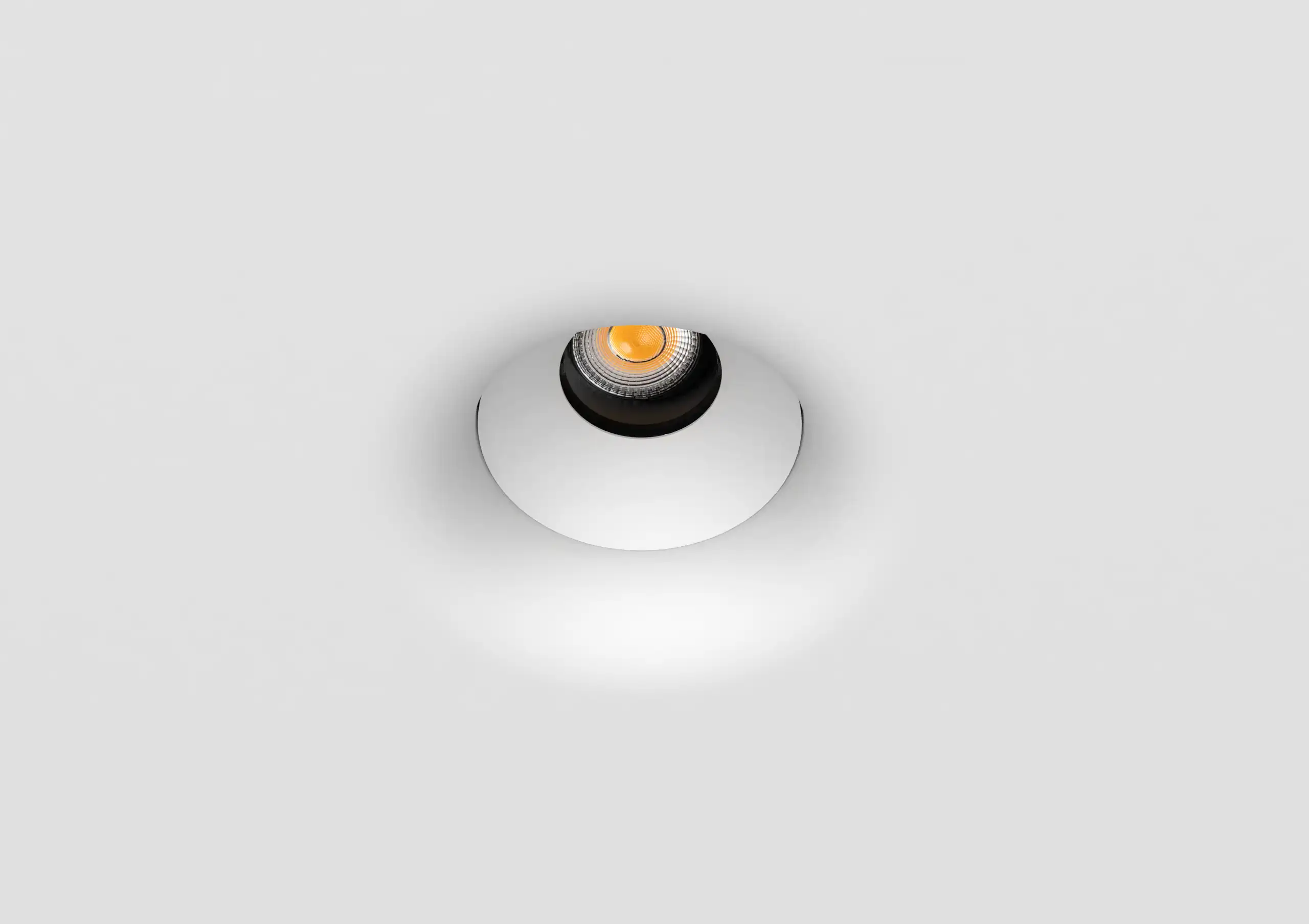 A trimless 2 inch recessed concave gypsum downlight designed for seamless architectural integration. The plaster-in gypsum housing allows the fixture to disappear fully into the ceiling, while the concave aperture and deep-set LED provide precise beam control with excellent glare reduction. Compact, adjustable, and refined, this downlight is ideal for high-end residential and commercial interiors where detail, comfort, and visual calm matter.