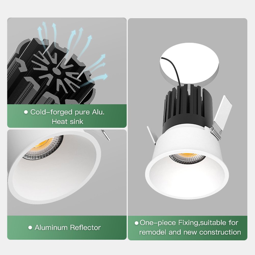 With a fixed light direction and multiple beam angle options, this downlight adapts easily to different layouts and ceiling heights. High CRI performance ensures accurate color rendering, making it ideal for residential, hospitality, retail, and commercial environments where visual comfort and material clarity are important.