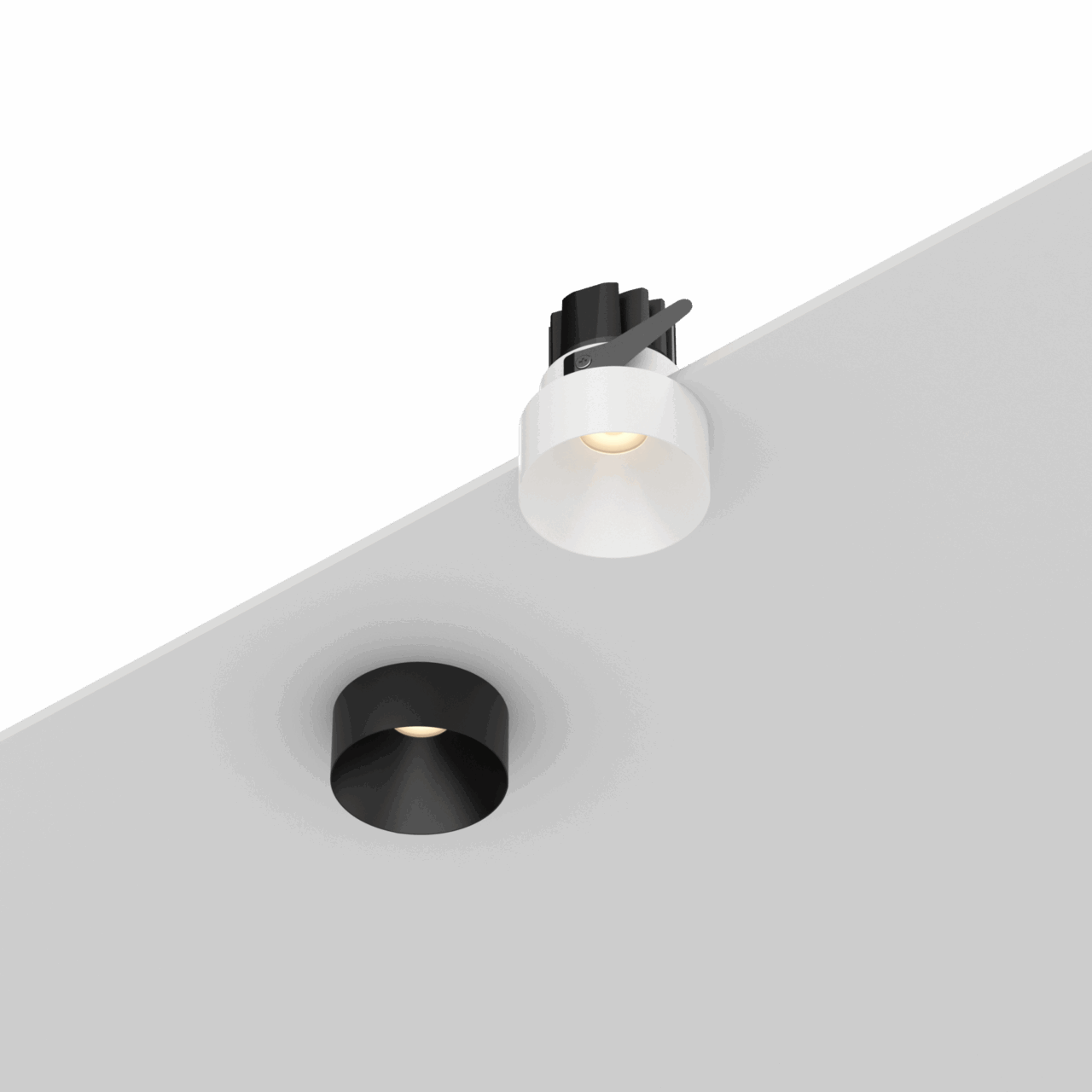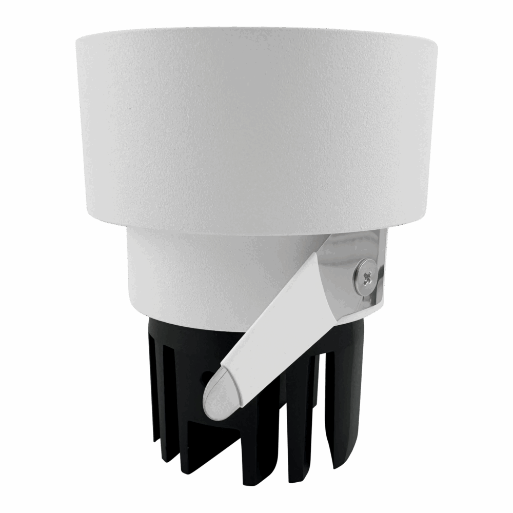 White recessed anti-glare LED downlight with black heat sink for ceiling lighting