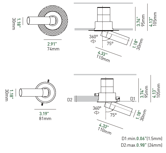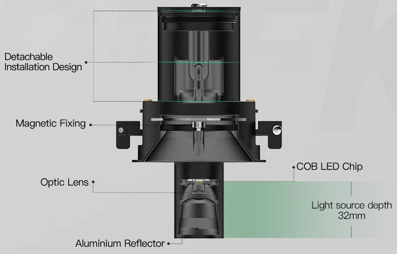 The Retractable Spot Light is a sleek, recessed spotlight engineered for glare-free, high-impact illumination. Its retractable design tilts up to 25°–75° for precise accenting of décor or architectural features, while the anti-glare lens delivers comfortable, soft lighting. Integrate seamlessly with Triac, 0-10V, or DALI dimming. Boasting a CRI of 97 and color temperatures ranging from 2700K to 5000K, this durable aluminum fixture offers accurate color rendering and efficient heat dissipation. Recessing smoothly into ceilings for a modern, refined look, it’s perfect for living rooms, offices, retail spaces, or galleries—bringing energy-efficient, flexible lighting to any environment.