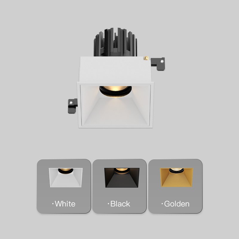 Square recessed anti-glare LED downlight with white trim for modern ceiling lighting