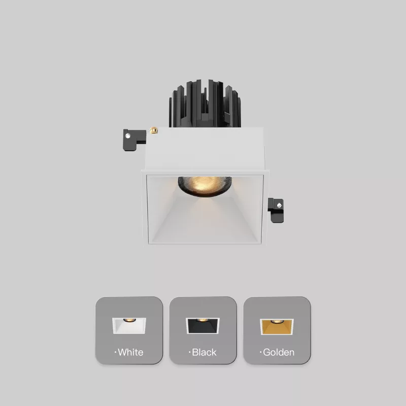 White recessed anti-glare LED downlight with black heat sink for ceiling lighting