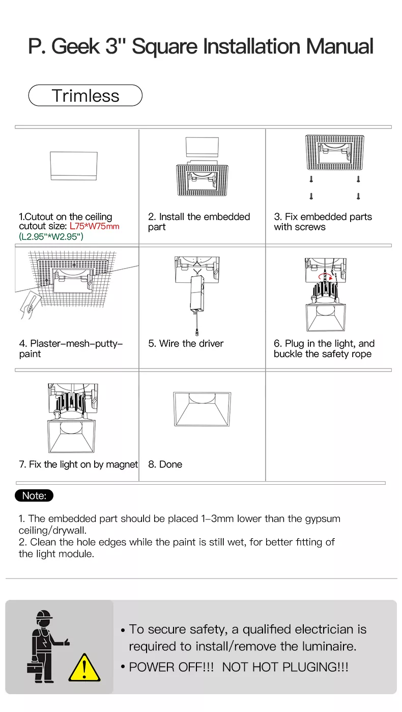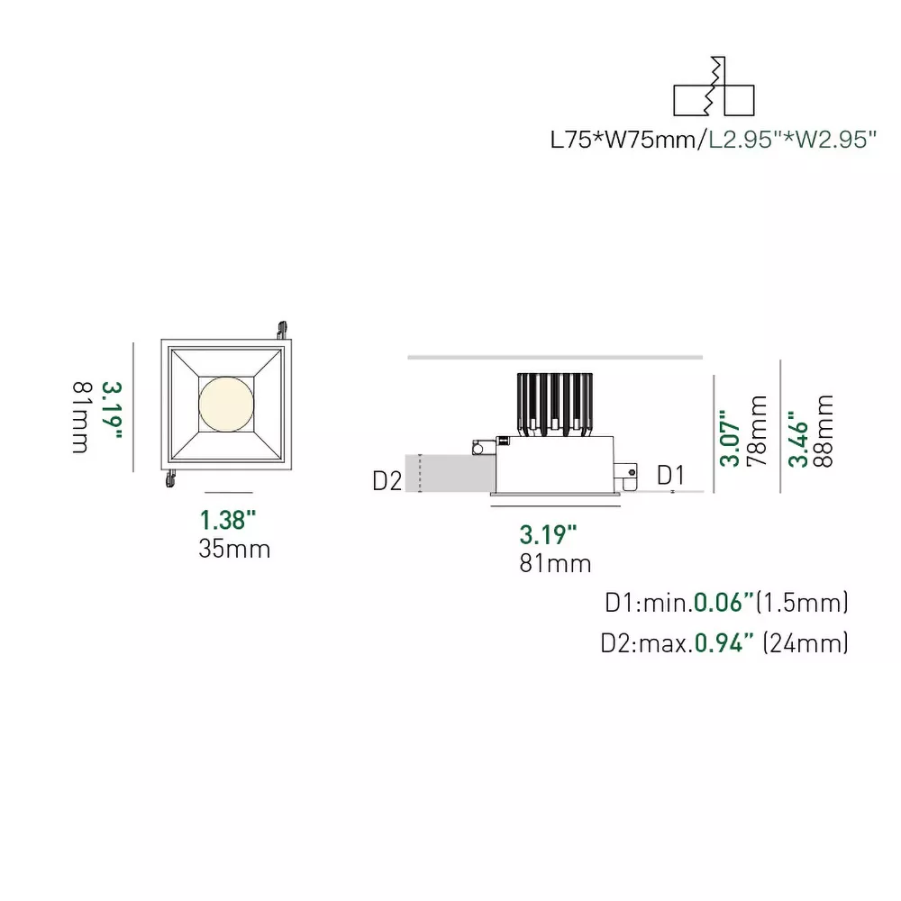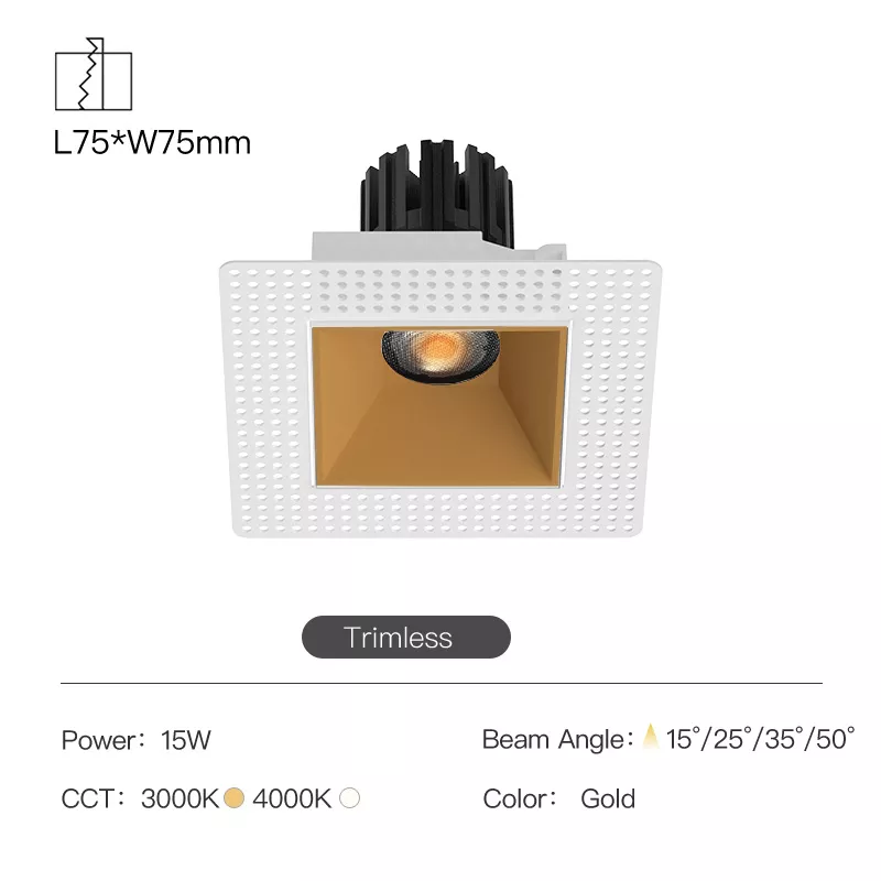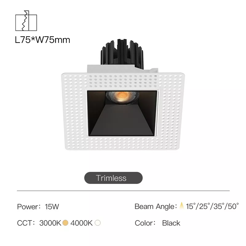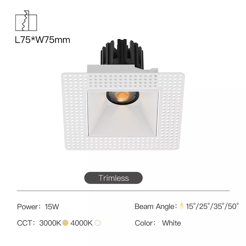 • 3 inch trimless square recessed profile