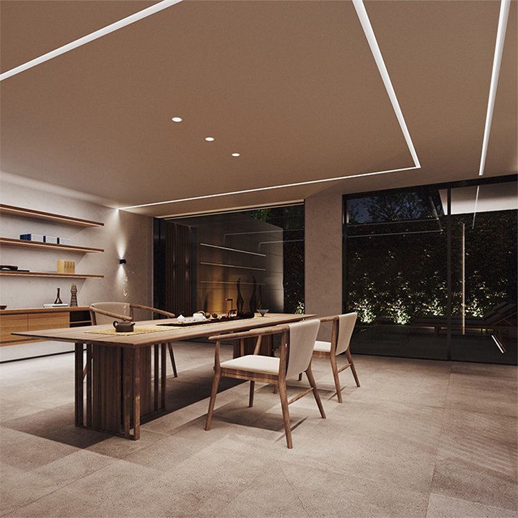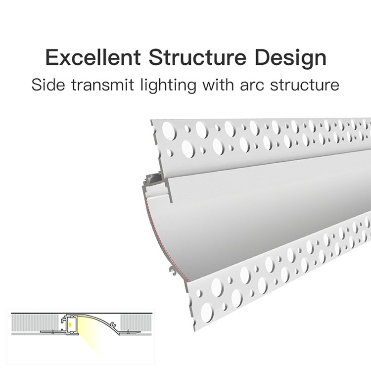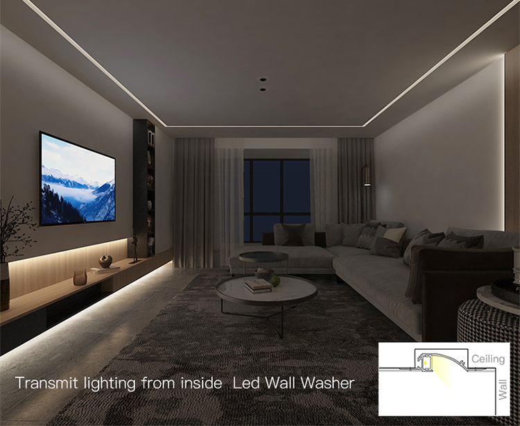 The Arc Trimless LED Wall Washer combines style and function to enhance modern interiors. Its curved aluminum profile design offers side-transmission lighting, casting a soft glow along walls and ceilings for an eye-friendly, glare-free environment. The plaster-in, trimless structure integrates smoothly into gypsum board, allowing for a flush finish that elevates architectural details. With a back connect groove and right-angle connectors, installation is both precise and flexible—simply plaster over, paint, and enjoy a clean, minimalist look. Durable construction resists dust and ensures longevity, making it perfect for living rooms, offices, and commercial spaces alike.