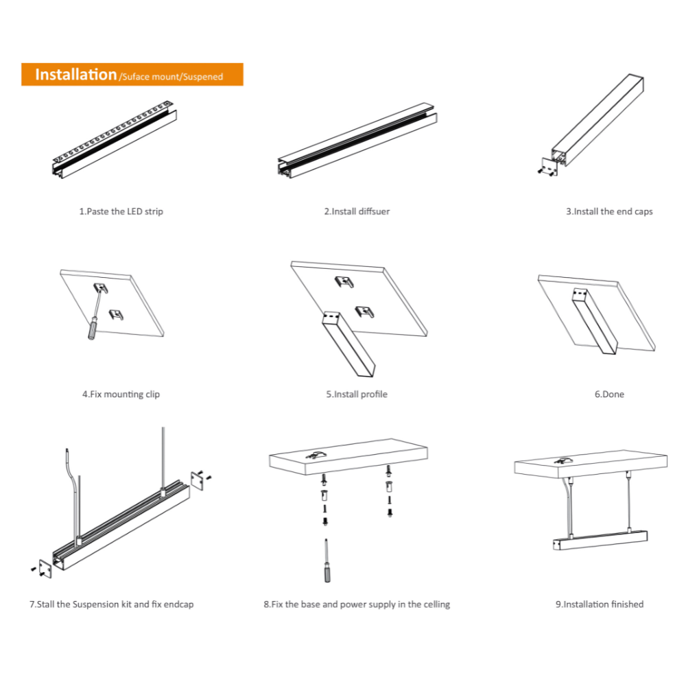 The LED Aluminum Channel for Strip Lights – AS3535 represents the ultimate solution for professional-grade illumination with its generous dimensions and versatile installation options. This premium channel features an impressive 35mm width and 37.5mm height profile, creating a substantial housing that makes a bold architectural statement while providing exceptional functionality. Crafted from high-quality AL6063-T5 aluminum, the AS3535 delivers superior thermal management to maximize LED performance and longevity. What truly distinguishes this channel is its remarkable versatility—it can be surface-mounted for a clean, integrated appearance or suspended using the included suspension kit to create dramatic floating light fixtures in commercial environments, hospitality spaces, or contemporary homes. The spacious 31mm internal mounting area accommodates the FL2835-120-8mm LED strip (12V/24V, 13W/m, 1350LM/m) with ample room for optimal heat dissipation, ensuring consistent brightness and extended operational life. The included PMMA opal diffuser transforms concentrated LED light points into a smooth, uniform illumination that enhances visual comfort while maintaining excellent light output. Available in elegant silver, sophisticated black, or contemporary white finishes to complement any interior design aesthetic, the AS3535 offers flexibility with multiple stock lengths of 2m, 2.5m, and 3m to accommodate various project requirements. Each channel comes complete with matching endcaps, secure mounting clips, and professional suspension hardware for straightforward installation. Whether you’re designing architectural lighting features for commercial spaces, creating impactful retail displays, or enhancing modern residential interiors, the AS3535 aluminum channel delivers an exceptional combination of aesthetic presence and lighting performance.
