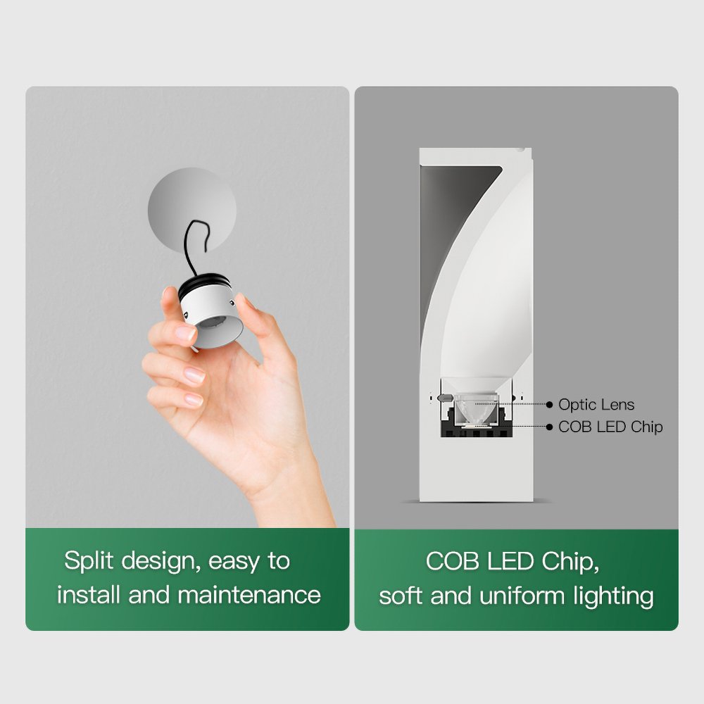 Despite its minimal appearance, performance is precise and controlled. The COB LED engine provides high color rendering, ensuring wall finishes and materials appear natural even at low light levels. The fixed beam angle is optimized for step and floor illumination, avoiding harsh cut-off lines while maintaining usable brightness where it matters most.