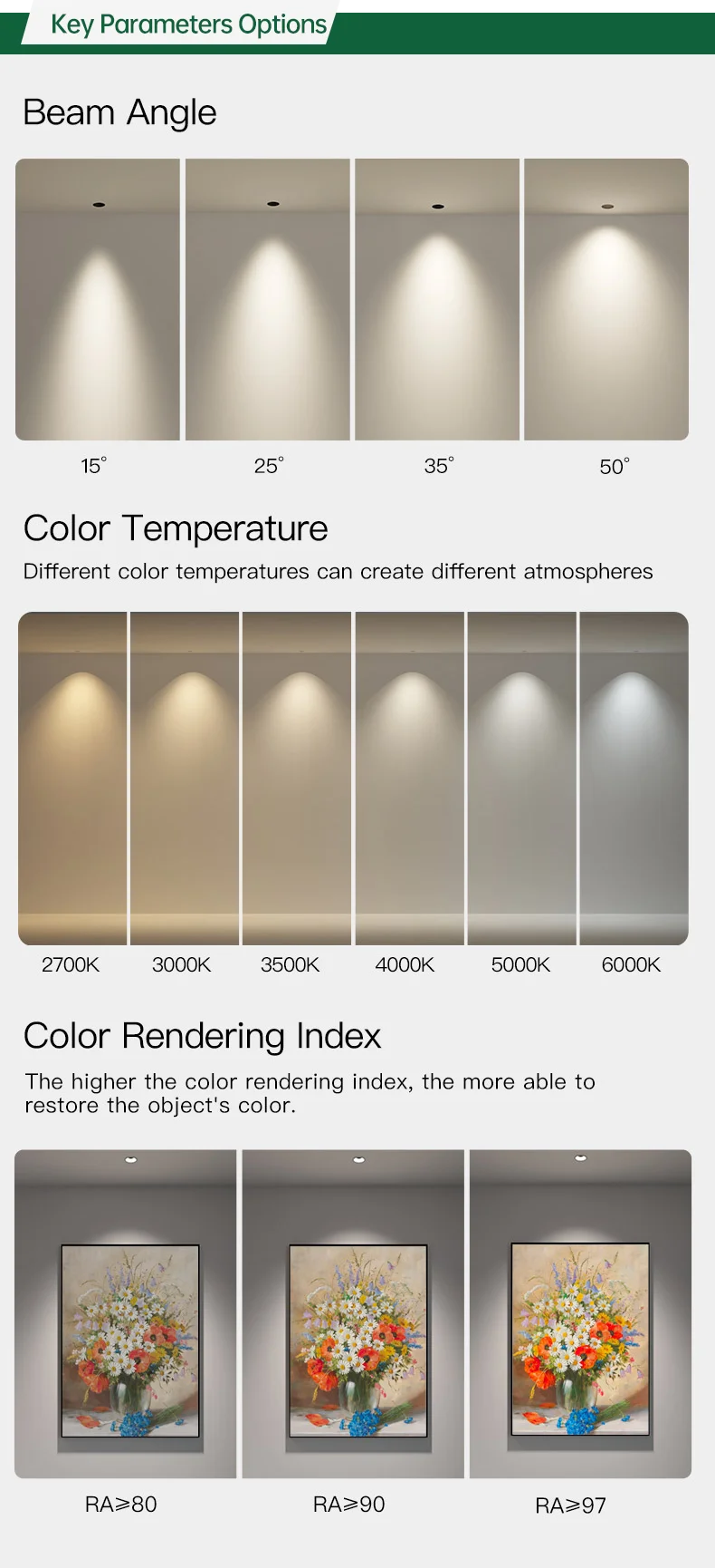 The fixture combines a gypsum outer housing with an aluminum light body to ensure proper heat management and long-term reliability. This construction supports stable output and consistent color over time, which is critical for plaster-in fixtures that are designed to be permanent architectural elements rather than replaceable accessories.