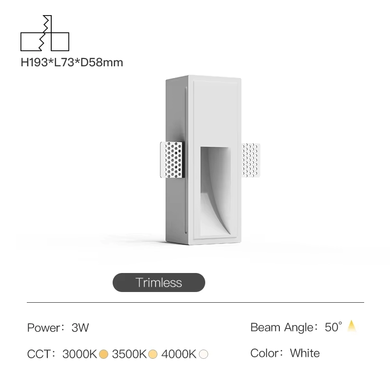 A trimless gypsum square step light designed for seamless integration into walls, stair risers, and architectural surfaces. The plaster-in gypsum body disappears into the finish, leaving a clean square aperture that delivers soft, directional light along floors and steps. With a compact recessed profile, high color rendering, and carefully controlled beam, it provides safe, low-glare guidance lighting without visual clutter. Ideal for luxury residential stairs, corridors, feature walls, and design-driven interiors where the light should feel built into the architecture.