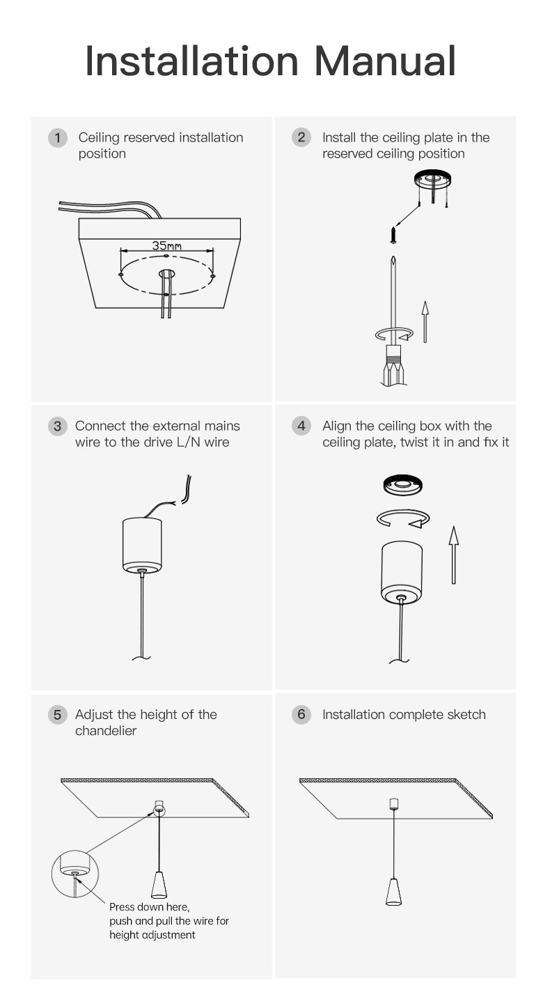 The Yexi Pendant Light combines sleek, contemporary design with exceptional lighting performance to elevate any modern space. Featuring a conical aluminum shade with an elegant black exterior and warm interior accent, this minimalist pendant delivers focused illumination with a generous 60° beam angle. The precision-engineered 6W LED light source produces an impressive 72 lumens per watt, balancing energy efficiency with powerful brightness. Available in warm white (3000K) or neutral white (3500K) color temperatures, the Yexi showcases colors and textures with remarkable fidelity thanks to its near-perfect 98Ra color rendering index. The adjustable suspension cable extends up to 70.9 inches (1800mm), offering versatile installation options for various ceiling heights. Perfect for kitchen islands, dining areas, hallways, or workspaces, the Yexi Pendant Light makes a sophisticated statement whether installed individually or arranged in a series.